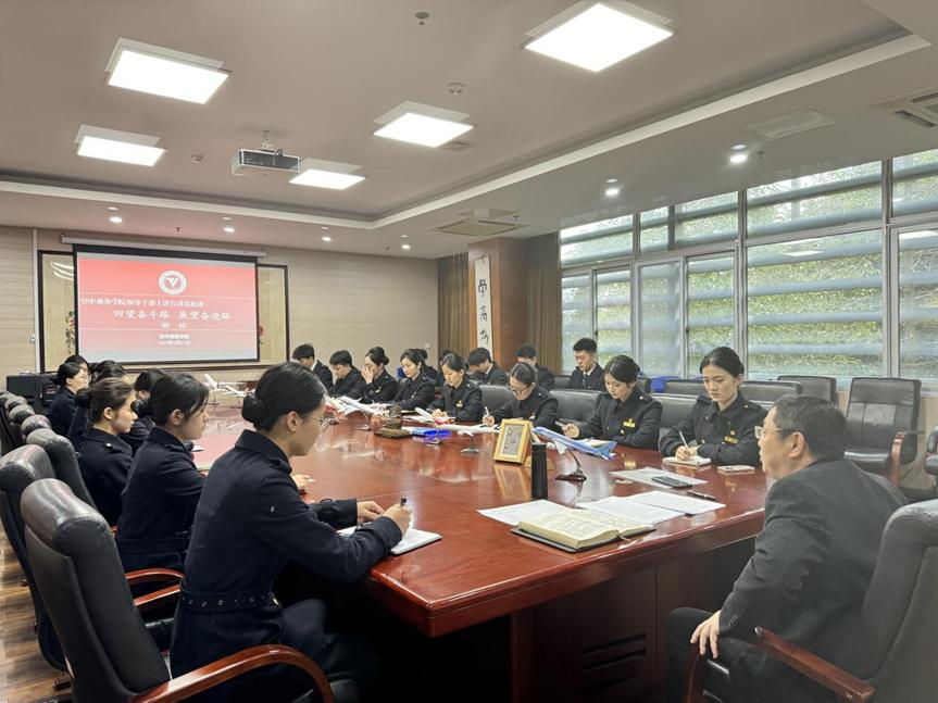 本网讯 顾骋瑞 摄影/报道:2月27日,空中乘务学院(以下简称“学院”)2025年春季学期“开学第一课”在学院315会议室开讲。空中乘务学院党委书记胡涛主讲,20余名学生骨干、学生党员和团员代表参学。